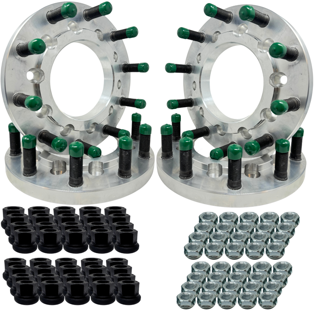 10x225 to 10x285 Hub Centric Wheel Adapter Kit 1" inch For 2005+ Ford F-450, F-550 & 2012+ Ram 4500, 5500 To 10x285.75 Semi Alcoa Wheels 22.5/24.5 | 170.1mm Bore to 220mm Centering Lip | 22x1.5 Studs & 14x1.5 Lug Nuts Included | - 1" Inch Thick (25mm) is backordered and will ship as soon as it is back in stock.